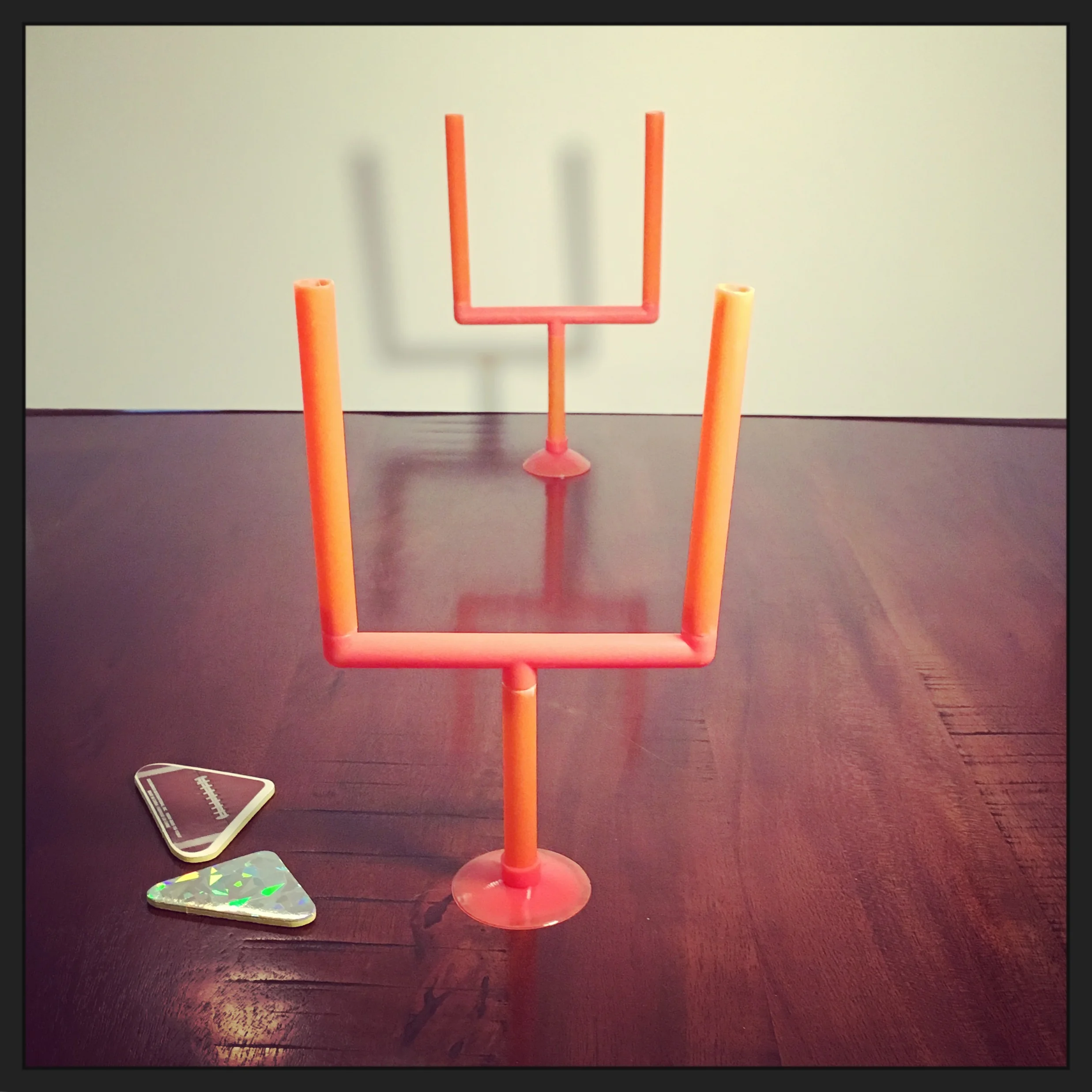 Line the two goal posts up in a line, and "kick" (flick with your finger) the ball through for a single or double field goal. If the football makes it through 1 post it is worth 50 points. If it passes through both posts 50 more points are added (or 100 depending on your scoring preferences).
